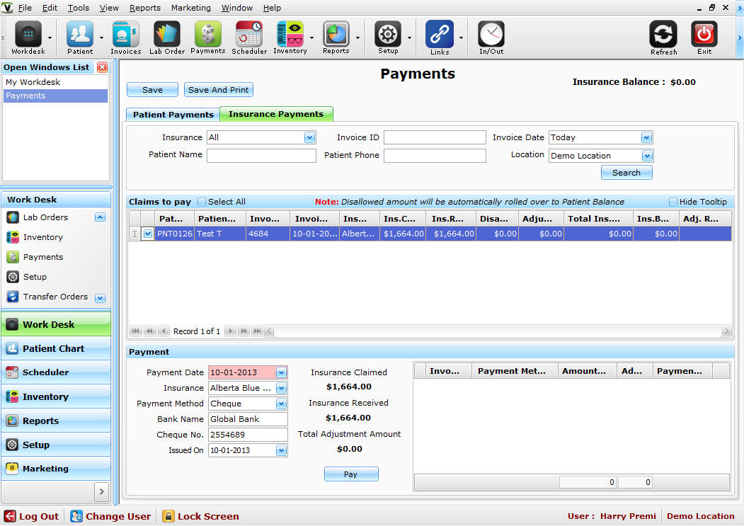 - Double click on the result to open the specific screen e.g. Invoice, Lab Order, Rx, Patient Chart etc.