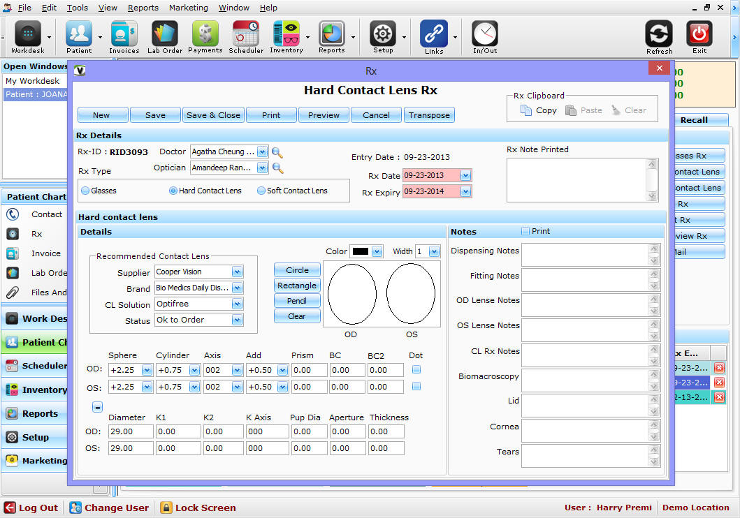 - Track Physician, Optician, Lens Info, RX Date and Rx Expiry